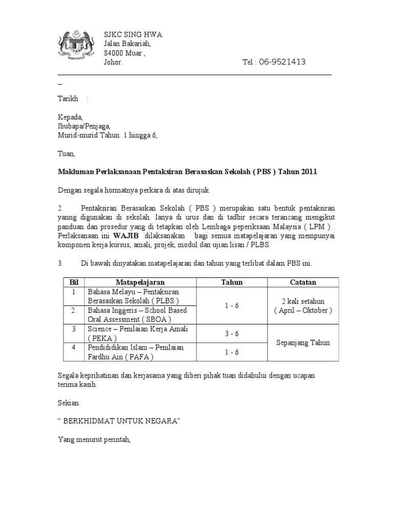 Contoh surat makluman kepada ibu bapa/ penjaga. Kumpulan contoh surat makluman peperiksaan kepada ibu bapa terbaru 2019.